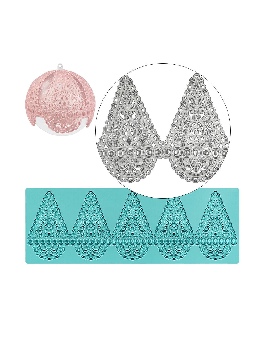 Foremka silikonowa, koronka na bombki rozm. 32,5x11,5x0,2 cm