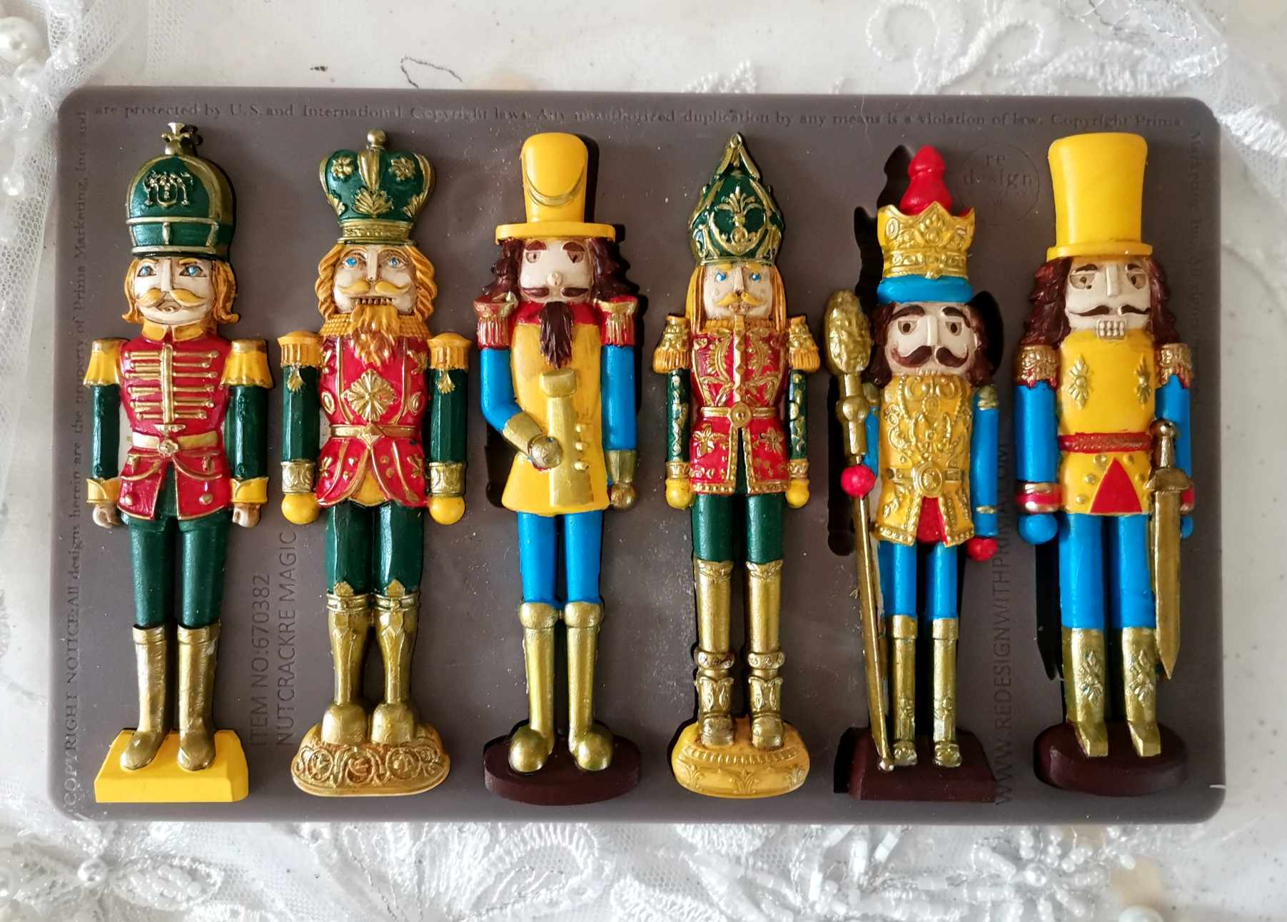 Foremka Nutcracker Magic to zestaw sześciu figurek żołnierzyków, dopracowanych w każdym detalu. Ich misternie wykonane wzornictwo oddaje bajkowy klimat i urok legendarnej opery Dziadek do Orzechów. Dzięki tym odlewom w prosty sposób stworzysz magiczną atmosferę oraz przywołasz ponadczasową tradycję świąt.