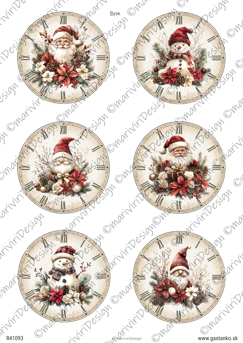 Papier ryżowy A4 - Mikołaj, skrzat, bałwanek na tarczach zegara 8cm | ©mariviriDesign