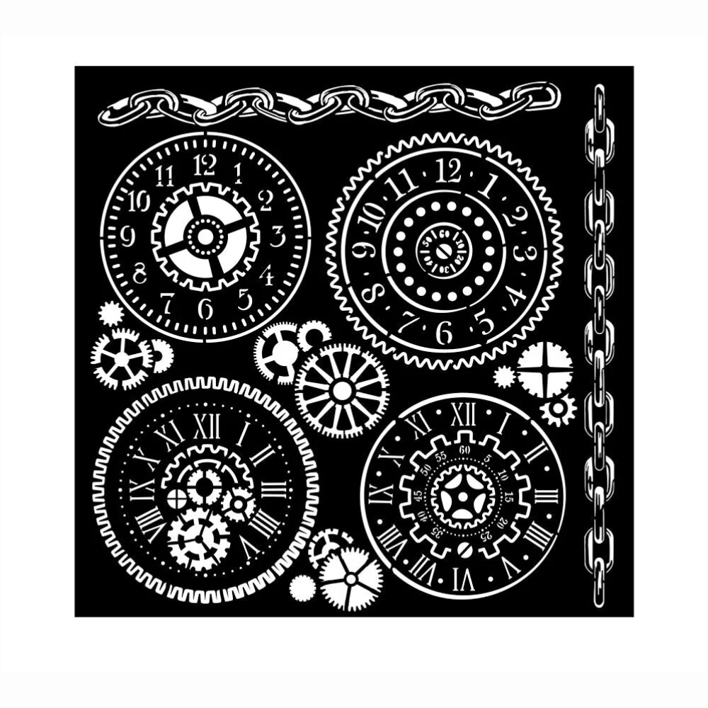 Szablon 3D Stamperia 18x18 cm - Tarcze zegarowe, zębatki, łańcuchy